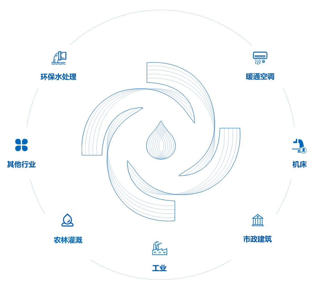 旗下系列產(chǎn)品廣泛應(yīng)用于環(huán)保水處理、暖通空調(diào)、機床、市政建筑、工業(yè)、農(nóng)林灌溉等諸多領(lǐng)域。